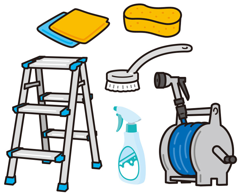 外壁汚れが比較的軽くて手の届く範囲であれば、ブラシやスポンジを使って洗浄できます。